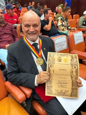 Murilo Pinheiro recebe medalha “Antonio Ramalho” e diploma de reconhecimento. Fotos: Paula Bortolini