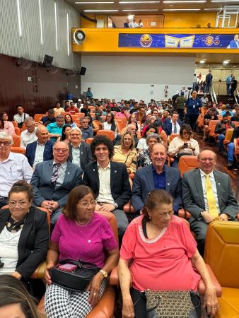 Dirigentes do SEESP compõem plateia durante a cerimônia.