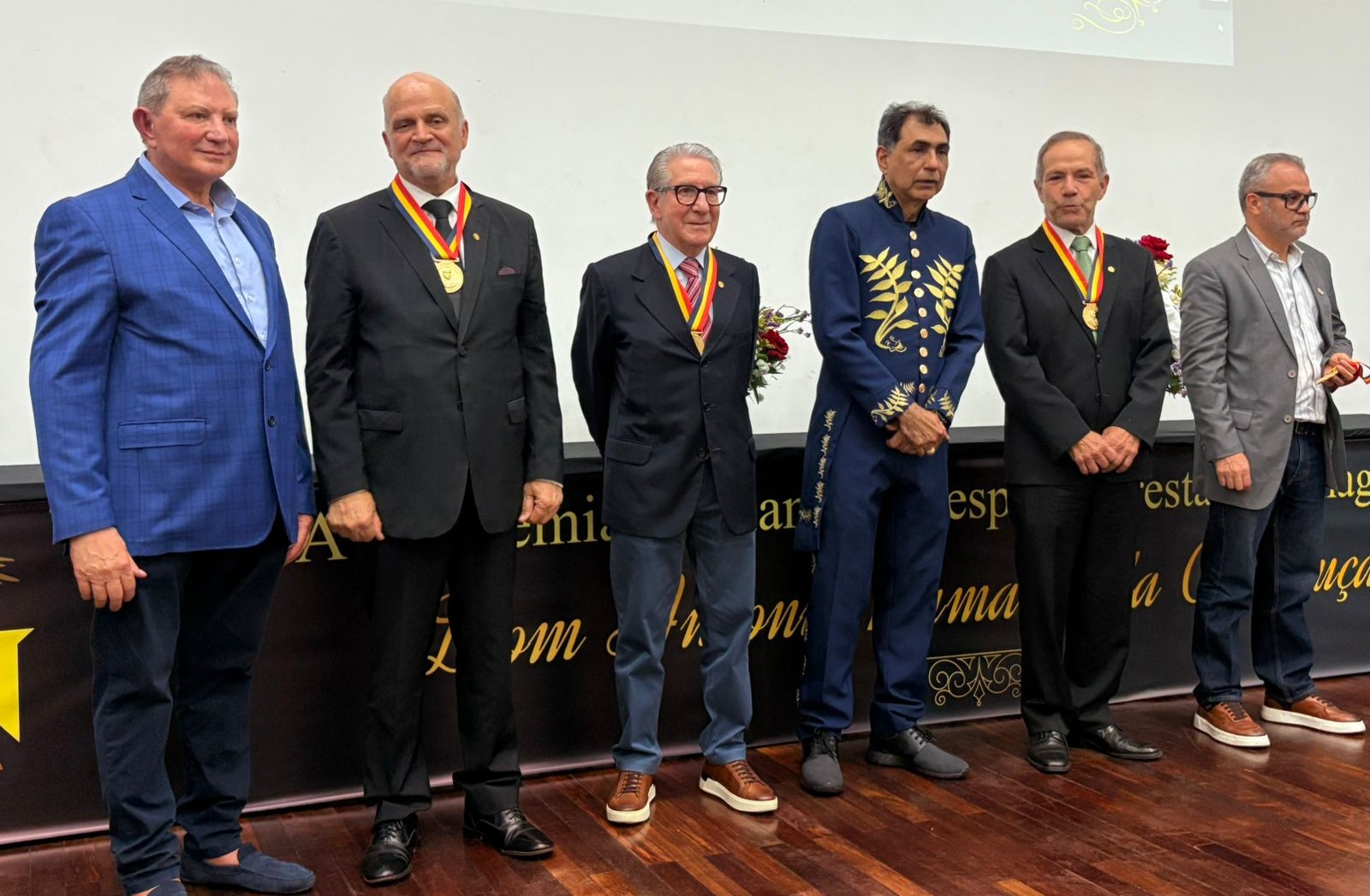 O presidente do SEESP, Murilo Pinheiro, recebeu na última sexta-feira (5/12) a medalha “Antonio Ramalho”, concedida pela Academia Brasileira William Shakespeare, “por sua jornada marcada por propósito, integridade e serviço ao próximo”.