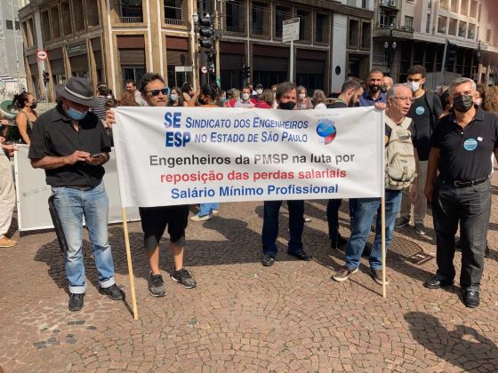 Engenheiros da Prefeitura de SP em mobilização na frente da Câmara Municipal de São Paulo. Foto: Acervo SEESP