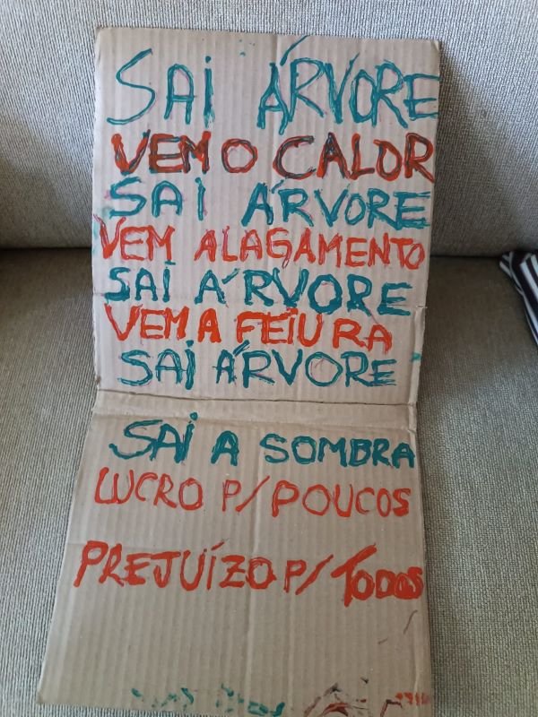 Cartaz durante ato público. Foto: Nestor Tupinambá
