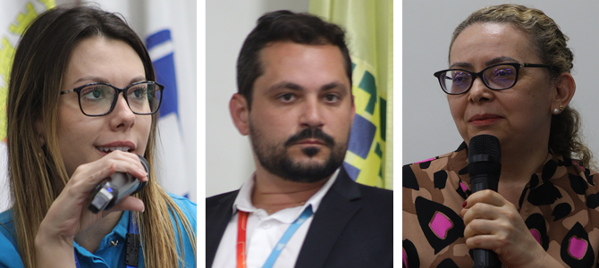 Eugenio Calil (Embraer), Daniela Galdino (CTG Brasil) e Márcio Affonso (Sabesp, à direita).Eugenio Calil, gerente de relações trabalhistas e sindicais da Embraer, fez questão de expressar o respeito pelo SEESP e seu presidente e reconhecer sua idoneidade, ao tempo que destacou a essencialidade da realização do seminário rumo a bom acordo nas campanhas salariais.