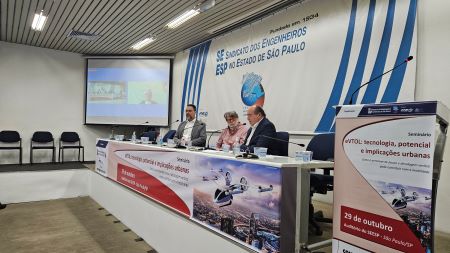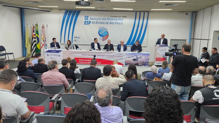 “A Região Metropolitana de São Paulo tende a ser o maior mercado do Hemisfério Sul quando se fala de mobilidade aérea urbana.” Foi com essa máxima que o membro do Conselho Tecnológico do SEESP e professor da Universidade Mackenzie, Darío Rais, abriu as falas do seminário “eVTOL: tecnologia, potencial e implicações urbanas”, promovido pelo sindicato em 29 de outubro último, em sua sede, na capital paulista.