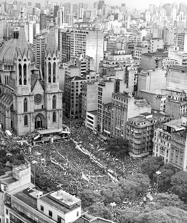 Comício das "Diretas Já" na Praça da Sé, na capital de São Paulo, em janeiro de 1984. Foto: Reprodução livro "FNE, 50 anos"A FNE, ao longo de seus 60 anos, engajou-se às principais lutas da sociedade brasileira e do movimento sindical, alinhadas a demandas centrais da engenharia e de seus profissionais. Fundada um mês antes do golpe militar que instituiu o regime de exceção por 25 anos no País, sempre teve como princípio a defesa da democracia. Assim, esteve nas ruas pelas “Diretas Já” e pelo fim da ditadura.